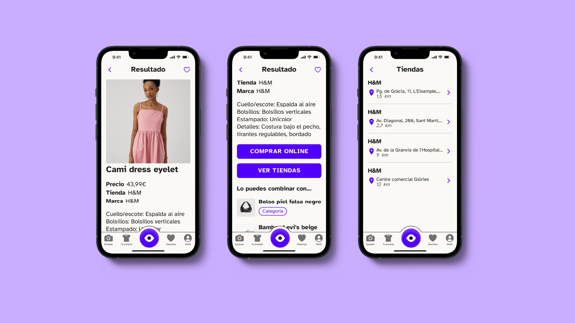 - Scanner: using the camera and voice guided instructions the user can get a detailed description of a piece of clothing.